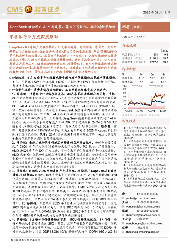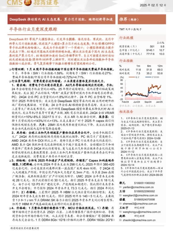 【海通证券】【20250219】2025年02月19日更新-【招商证券】半导体行业月度深度跟踪:DeepSeek推动国内AI生态发展,算力芯片适配、端侧创新等加速-83页