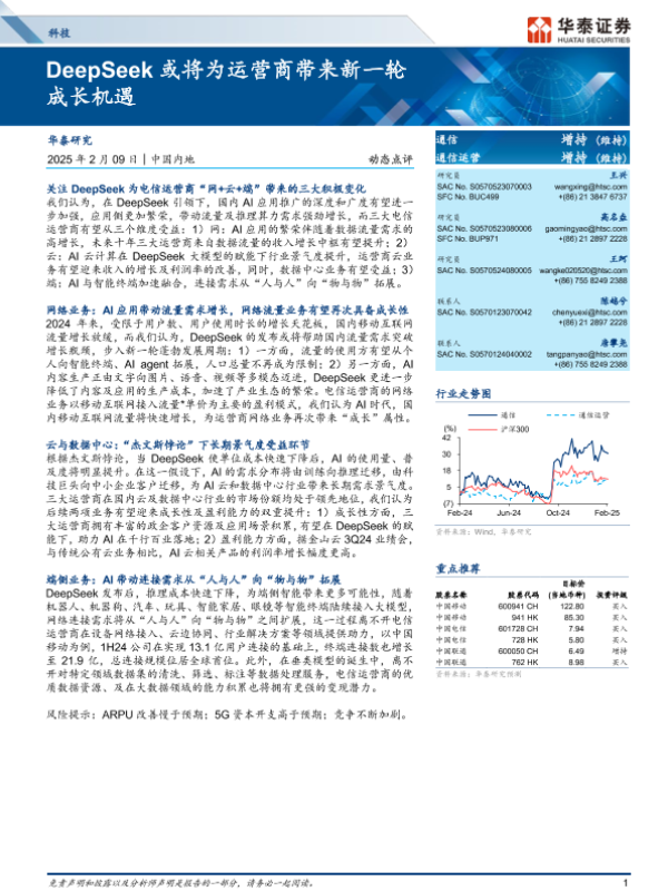【华泰证券】【20250224】通信行业:DeepSeek或将为运营商带来新一轮成长机遇-13页
