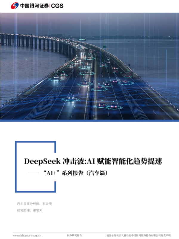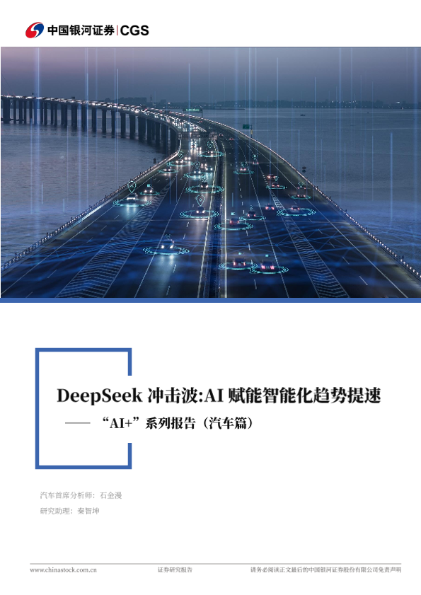 【银河证券】【20250219】AI+系列报告(汽车篇):DeepSeek冲击波:AI赋能智能化趋势提速-20页