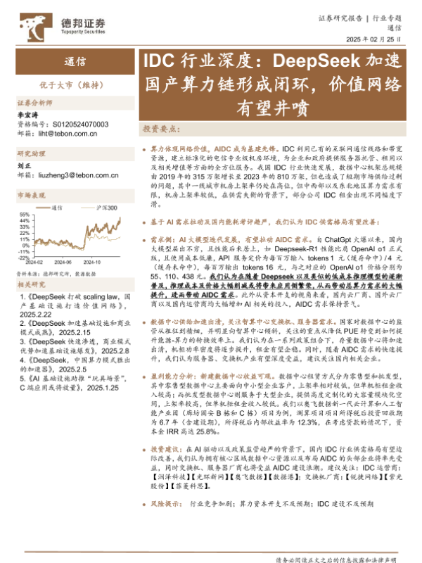 【德邦证券】【20250225】2025年02月27日更新-IDC行业深度:DeepSeek加速国产算力链形成闭环,价值网络有望井喷-42页