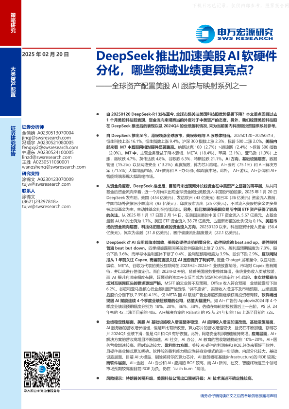 【申万宏源】【20250220】全球资产配置美股AI跟踪与映射系列之一:DeepSeek推出加速美股AI软硬件分化,哪些领域业绩更具亮点-16页
