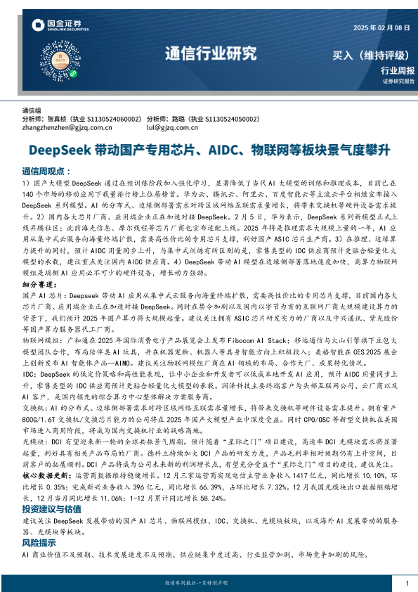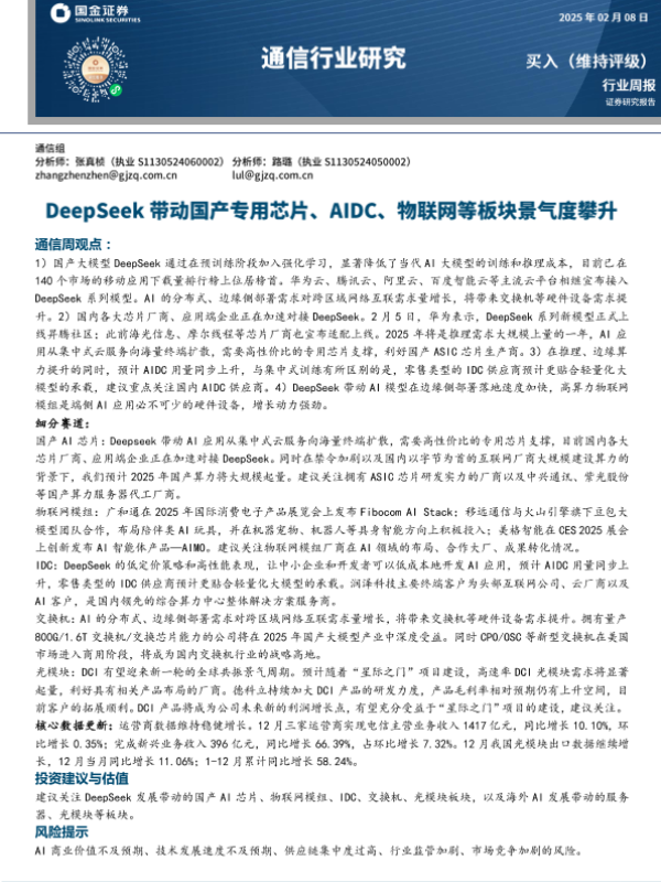 【国金证券】【20250305】通信行业研究:DeepSeek带动国产专用芯片、AIDC、物联网等板块景气度攀升-11页