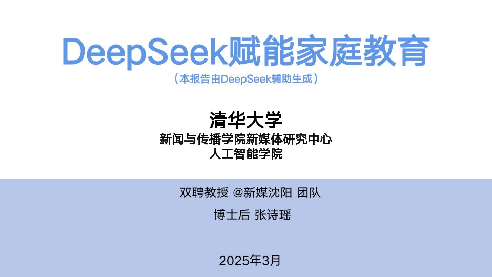 【清华大学新闻与传播学院新媒体研究中心 人工智能学院双聘教授@新媒沈阳团队】【202503】DeepSeek赋能家庭教育-91页