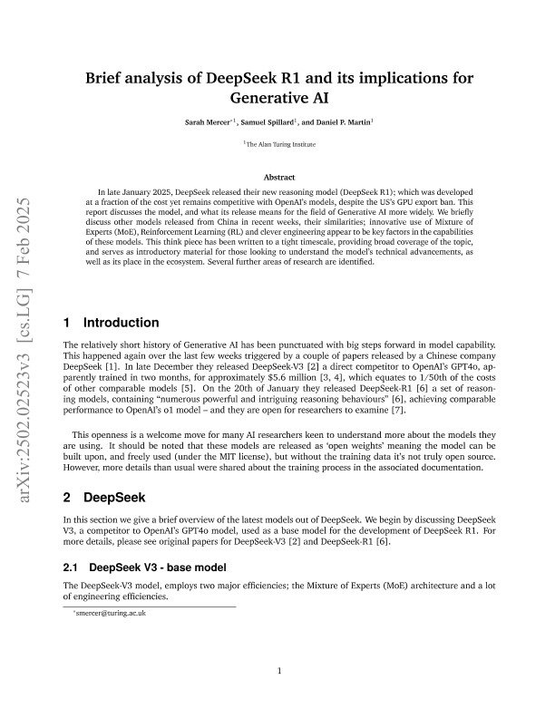 【The Alan Turing Institute】【20250325】2025年03月25日更新-DeepSeek R1简要分析及其对生成式人工智能的影响-9页