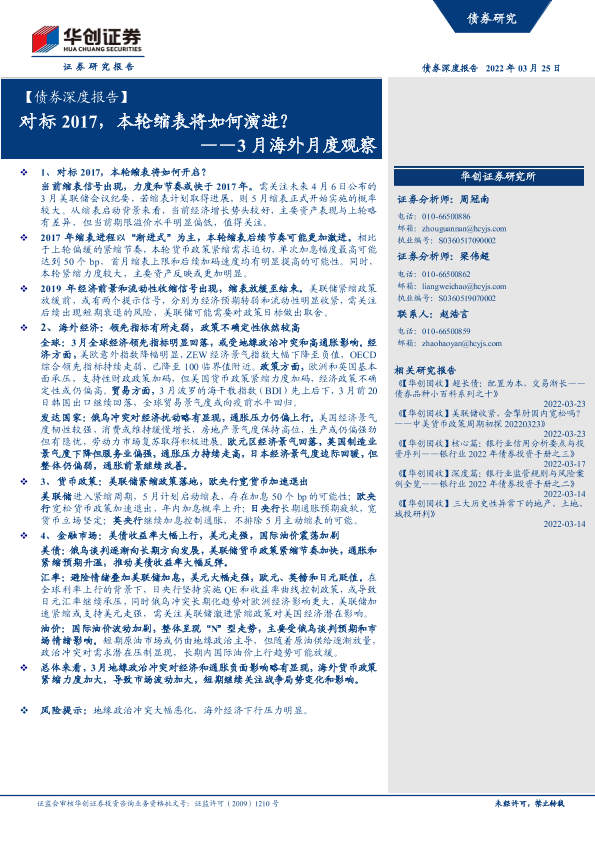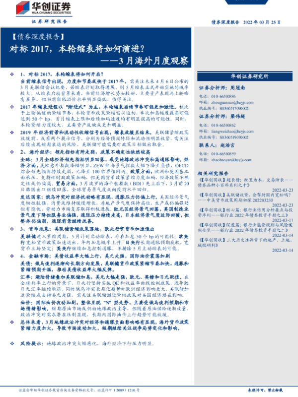 【华创证券】【20220325】3月海外月度观察:对标2017,本轮缩表将如何演进?-26页