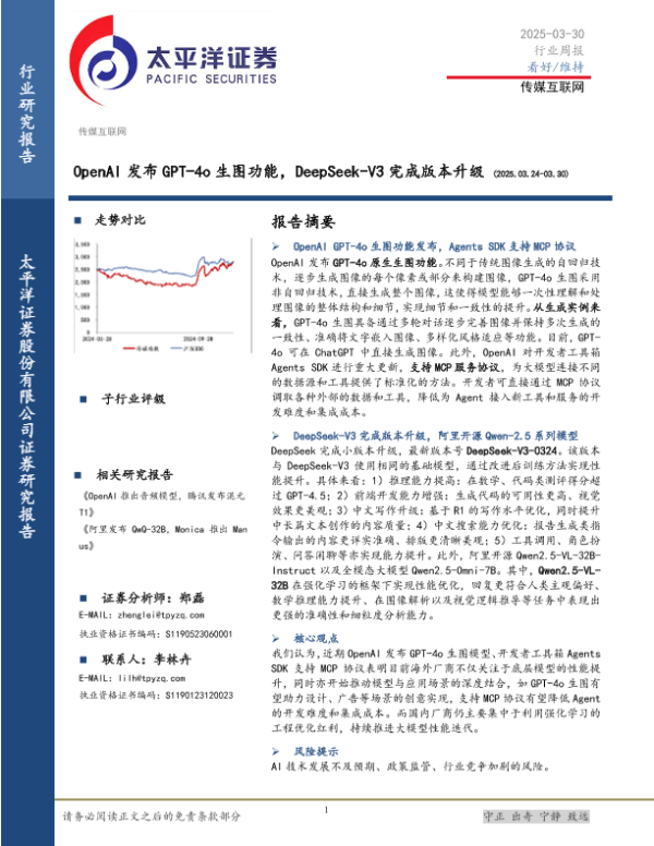 【太平洋证券】【20250401】OpenAI发布GPT-4o生图功能,DeepSeek-V3完成版本升级-20页