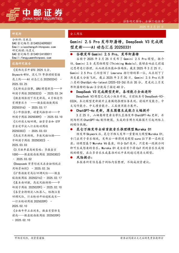 【中邮证券】【20250406】AI动态汇总:Gemini2.5Pro发布即屠榜,DeepSeekV3完成模型更新-20页