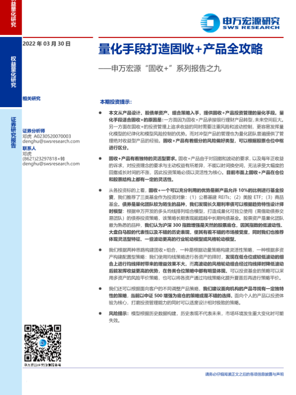 【申万宏源】【20220330】量化手段打造固收+产品全攻略-52页