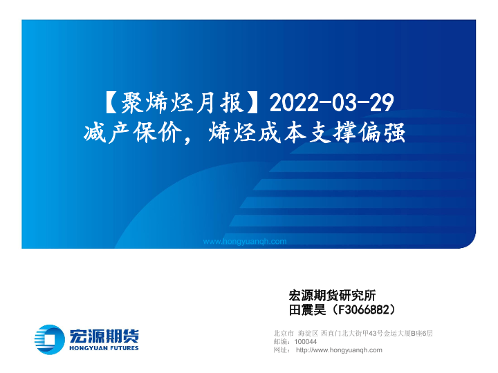 【宏源期货】【20220329】【聚烯烃月报】减产保价,烯烃成本支撑偏强-18页