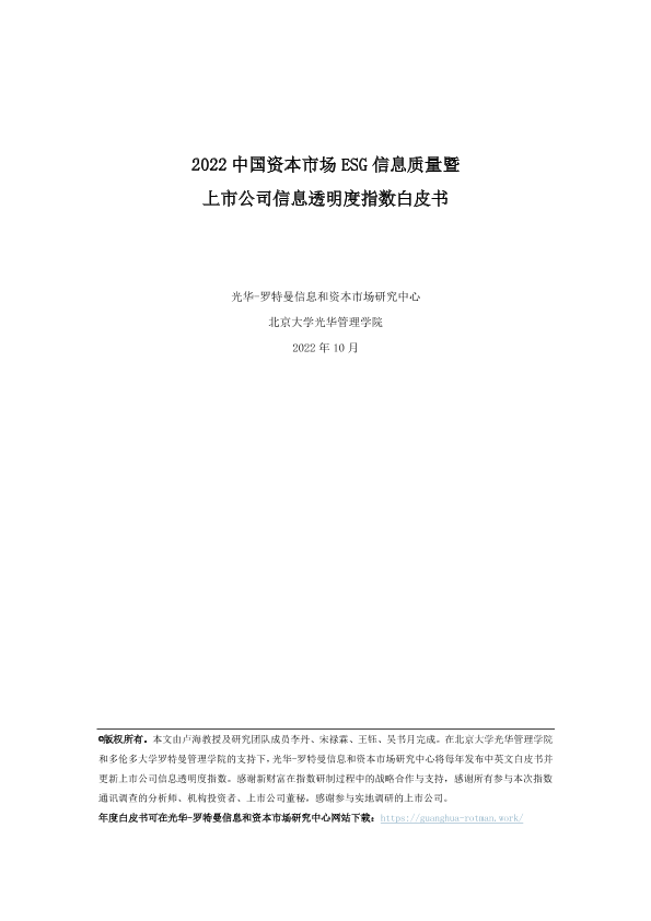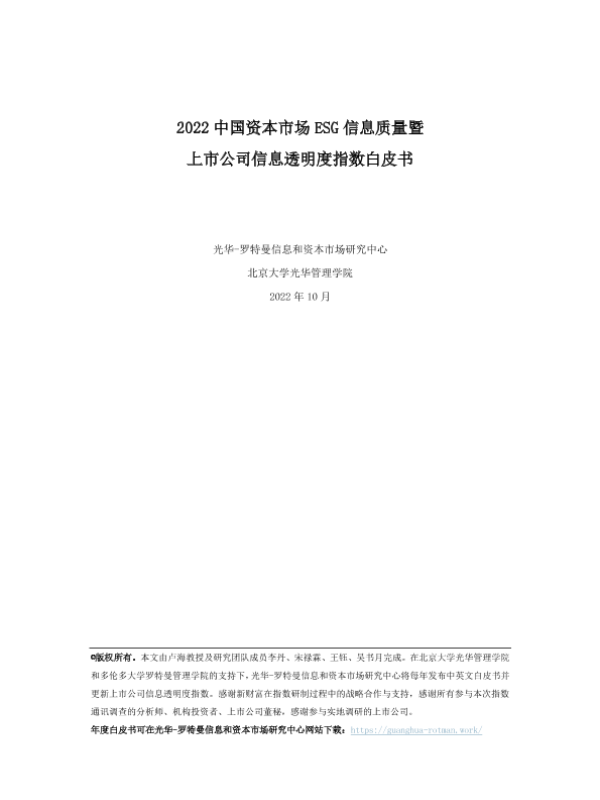 【光华-罗特曼信息和资本市场研究中心】【202210】2022中国资本市场ESG信息质量暨上市公司信息透明度指数白皮书-30页