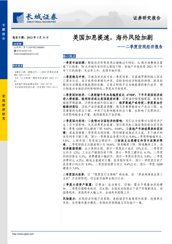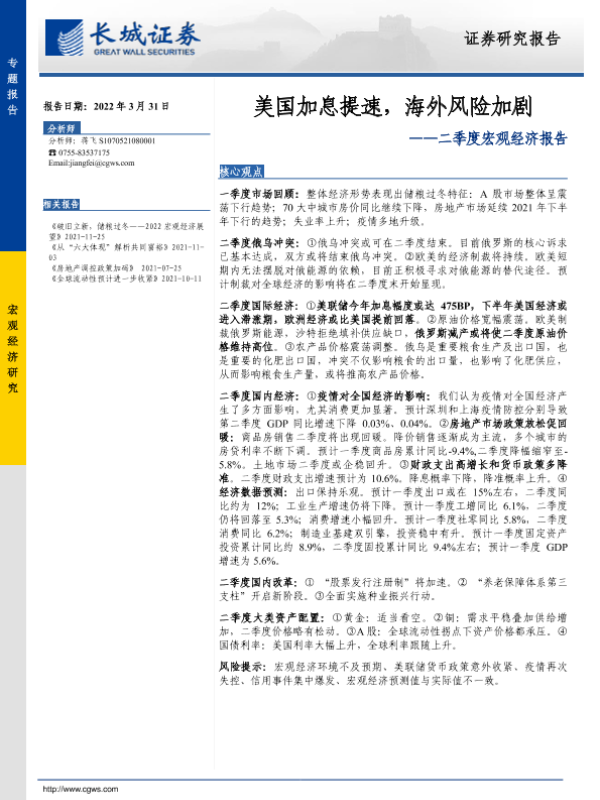 【长城证券】【20220331】二季度宏观经济报告:美国加息提速,海外风险加剧-42页