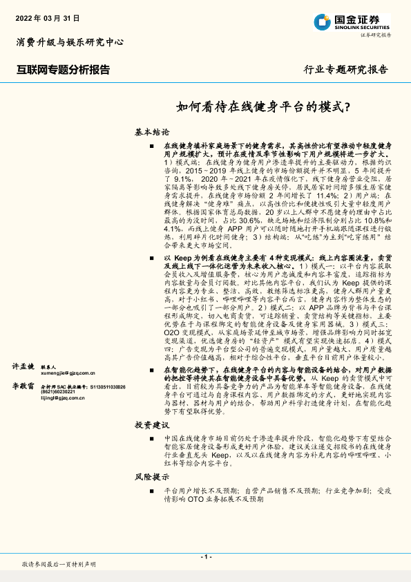 【国金证券】【20220331】互联网行业专题分析报告:如何看待在线健身平台的模式?-26页