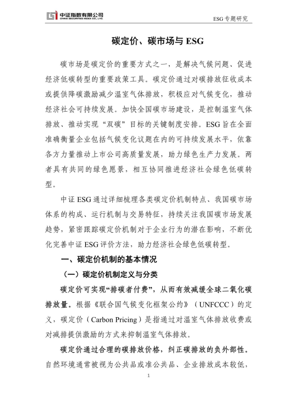 【中证指数】【20241205】ESG专题研究:碳定价、碳市场与ESG-15页