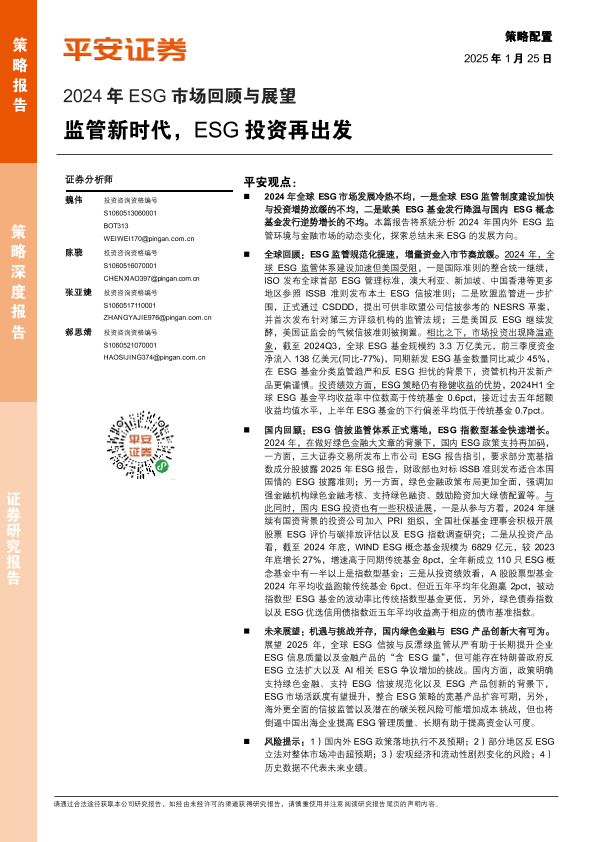 【平安证券】【20250212】2024年ESG市场回顾与展望:监管新时代,ESG投资再出发-20页