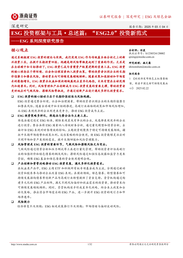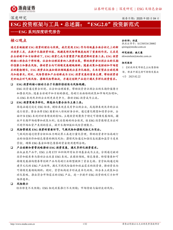 【浙商证券】【20250304】ESG系列深度研究报告:ESG投资框架与工具总述篇:“ESG2.0”投资新范式-32页