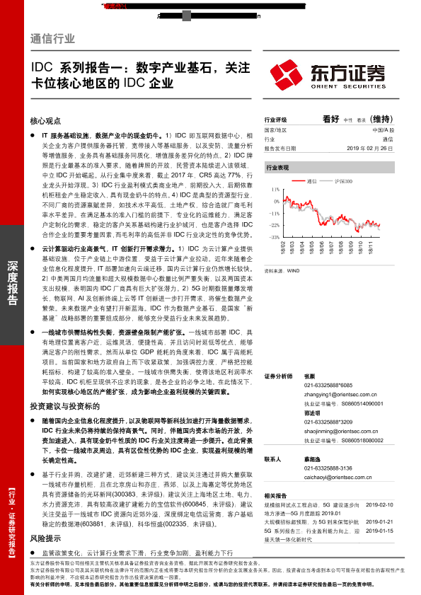 【东方证券】【20190226】通信行业:IC系列报告一:数字产业基石,关注卡位核心地区的IDC企业-20页