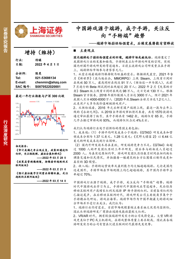 【上海证券】【20220401】传媒行业:端游市场弱供给强需求,后续发展潜能有望释放,中国游戏源于端游,成于手游,关注反向“手转端”趋势-47页