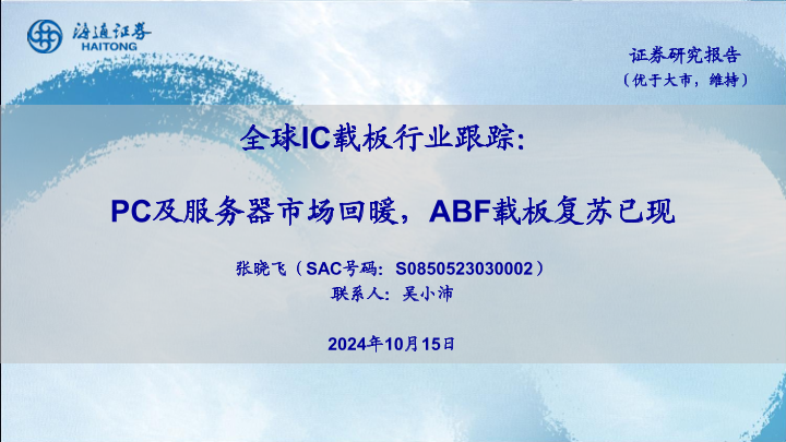 【海通证券】【20241026】全球IC载板行业跟踪:PC及服务器市场回暖,ABF载板复苏已现-28页