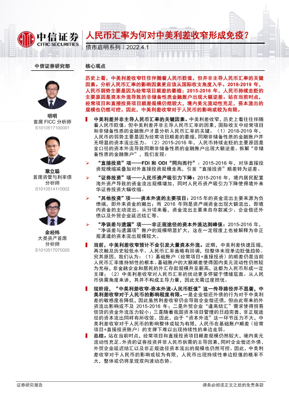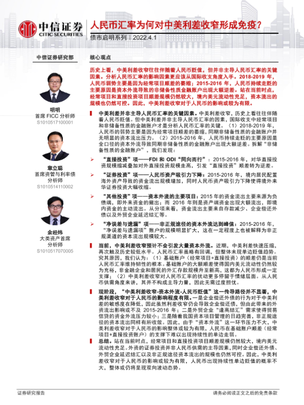 【中信证券】【20220401】债市启明系列:人民币汇率为何对中美利差收窄形成免疫?-35页
