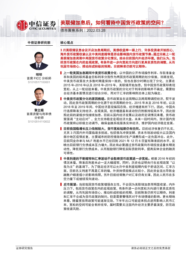 【中信证券】【20220328】债市聚焦系列:美联储加息后,如何看待中国货币政策的空间?-23页