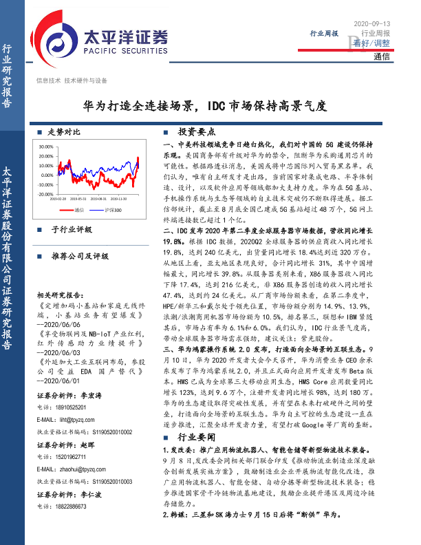 【太平洋证券】【20200913】2020年09月13日更新-华为打造全连接场景,IDC市场保持高景气度-14页