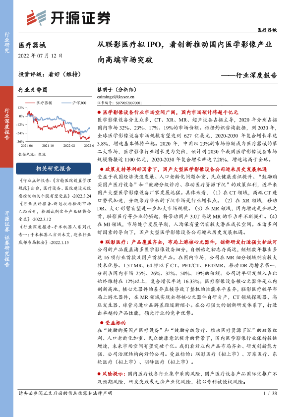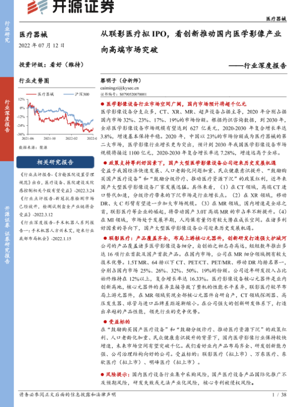 【开源证券】【20220712】2022年07月12日更新-【开源证券】医疗器械行业深度报告:从联影医疗拟IPO,看创新推动国内医学影像产业向高端市场突破-38页