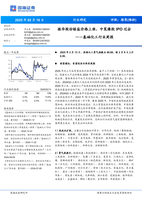 【国海证券】【20250216】2025年02月18日更新-【国海证券】基础化工行业周报:振华股份铬盐价格上涨,中策橡胶IPO过会-58页