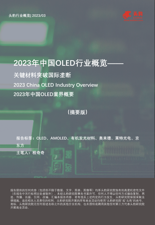 【头豹研究院】【20230920】2023年中国OLED行业概览-关键材料突破国际垄断-8页