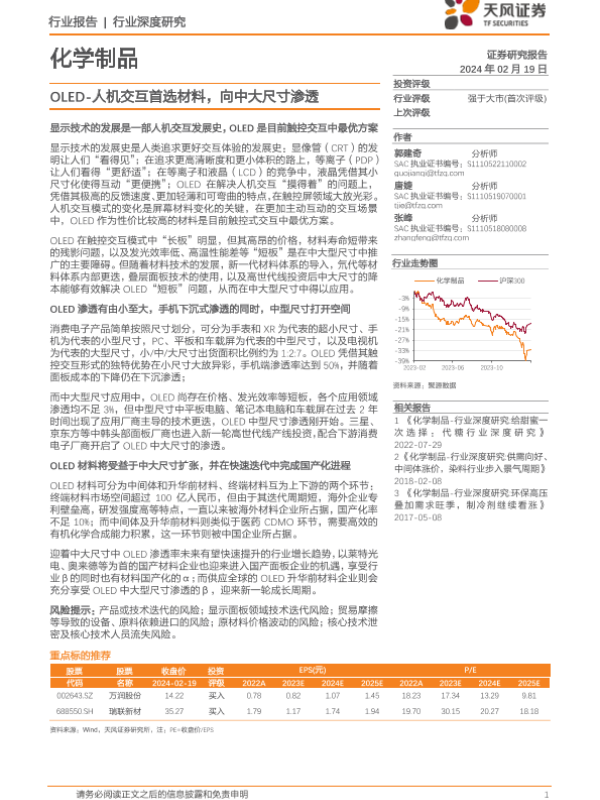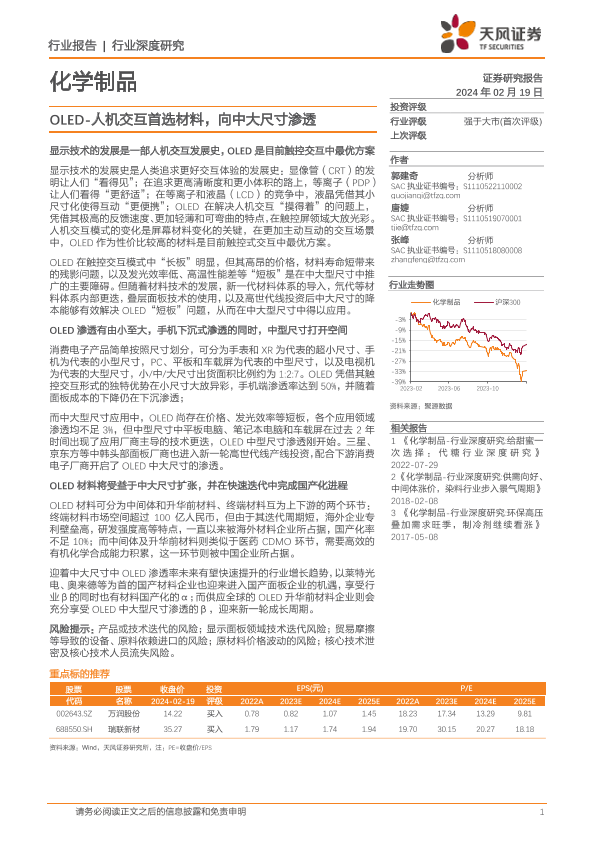 【天风证券】【20240219】化学制品行业深度研究-OLED-人机交互首选材料-向中大尺寸渗透-72页