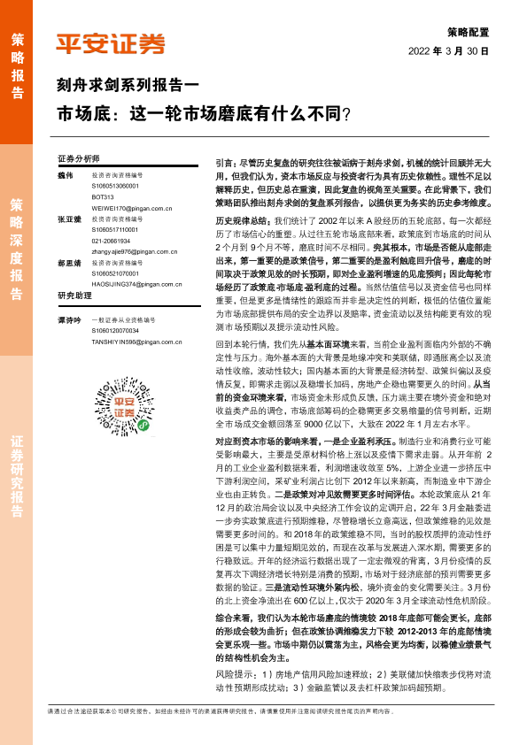【平安证券】【20220330】刻舟求剑系列报告一:市场底,这一轮市场磨底有什么不同?-27页