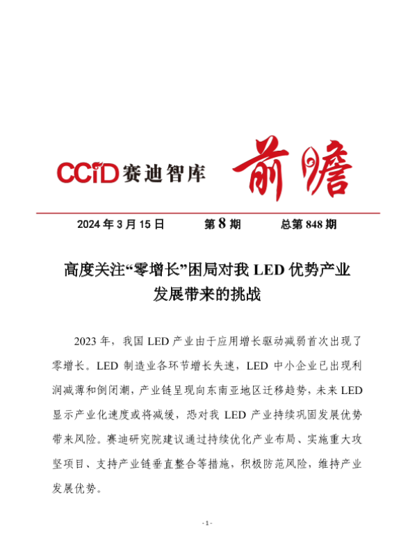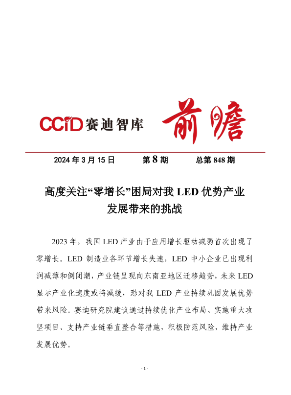 【赛迪前瞻】【20240315】2024年第8期(总848期):高度关注“零增长”困局对我LED优势产业发展带来的挑战-13页