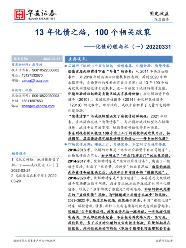 【华安证券】【20220331】化债的道与术(一):13年化债之路,100个相关政策-22页