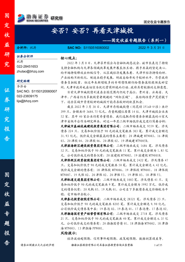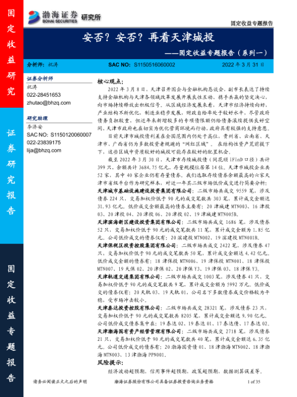 【渤海证券】【20220331】固定收益专题报告 (系列一):安否?安否?再看天津城投-35页