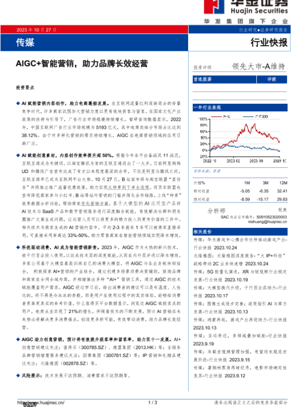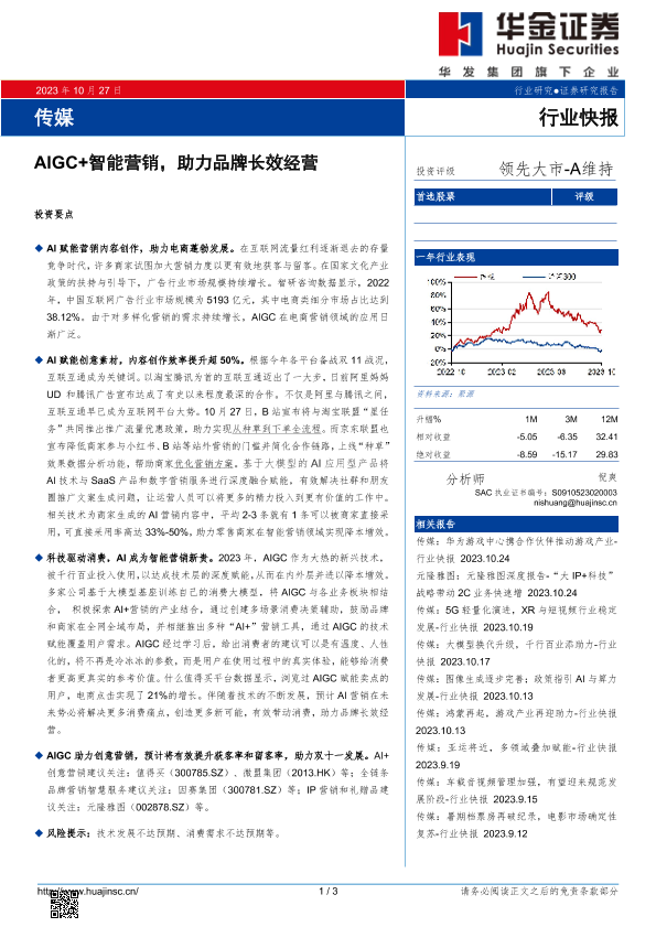 【华金证券】【20231029】传媒-AIGC+智能营销-助力品牌长效经营-3页