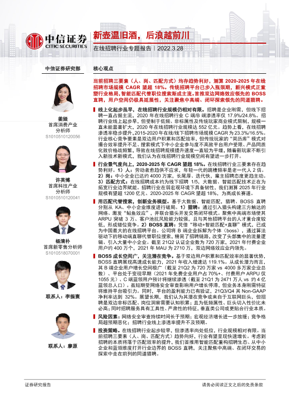 【中信证券】【20220328】在线招聘行业专题报告:新壶温旧酒,后浪越前川-60页