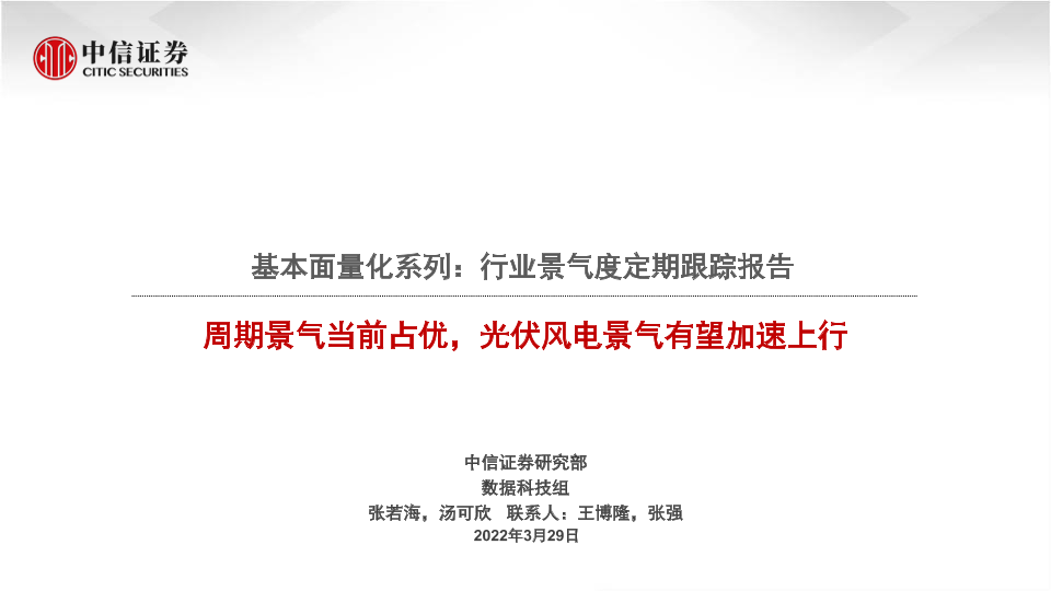 【中信证券】【20220329】基本面量化系列:行业景气度定期跟踪报告,周期景气当前占优,光伏风电景气有望加速上行-19页
