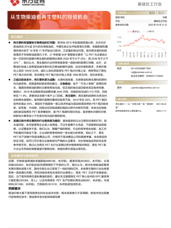 【东方证券】【20220331】基础化工行业:从生物柴油看再生塑料的投资机会-17页