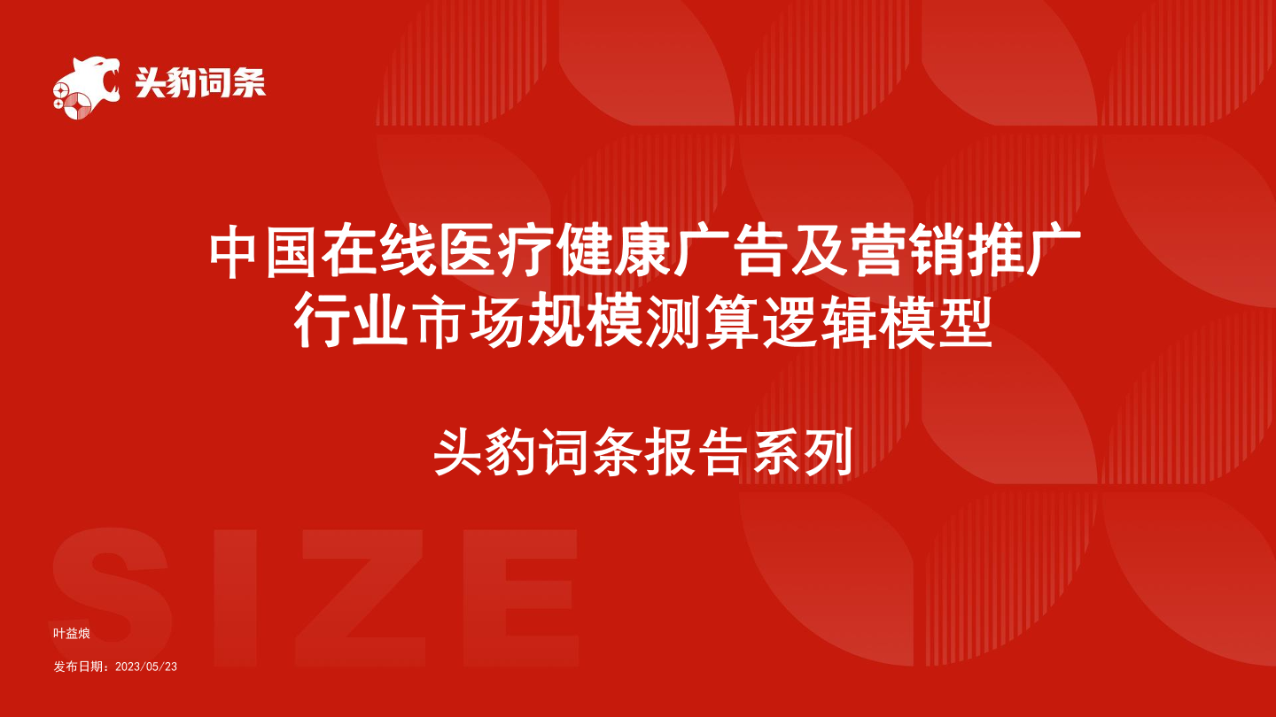 【头豹研究院】【20230523】中国在线医疗健康广告及营销推广行业市场规模测算逻辑模型-13页