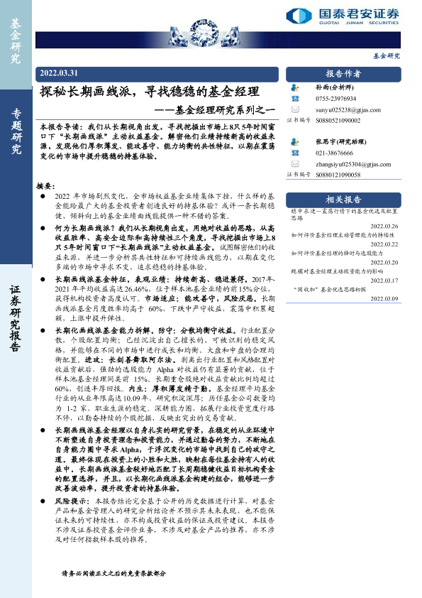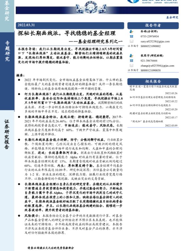 【国泰君安证券】【20220331】探秘长期画线派,寻找稳稳的基金经理-21页