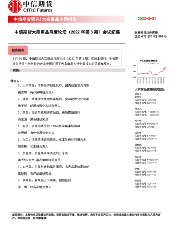 【中信期货】【20220331】大宗商品月度论坛(2022 年第 3 期)会议纪要-21页