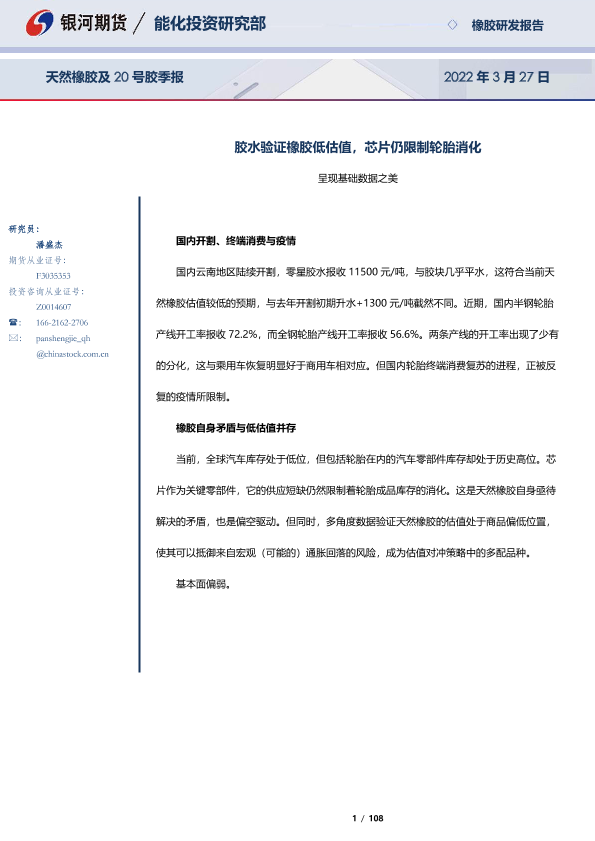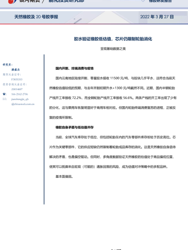 【银河期货】【20220327】天然橡胶及20号胶季报:胶水验证橡胶低估值,芯片仍限制轮胎消化-108页
