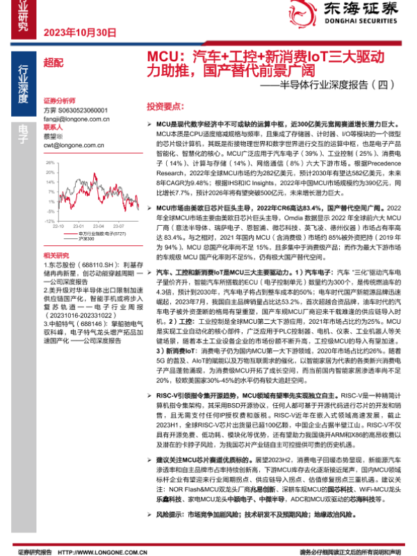 【东海证券】【20231030】MCU:汽车+工控+新消费IoT三大驱动力助推,国产替代前景广阔-53页