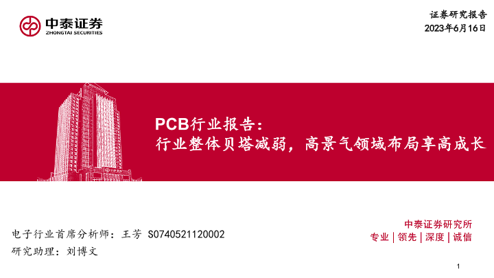 【中泰证券】【20230619】PCB行业报告:行业整体贝塔减弱,高景气领域布局享高成长-51页