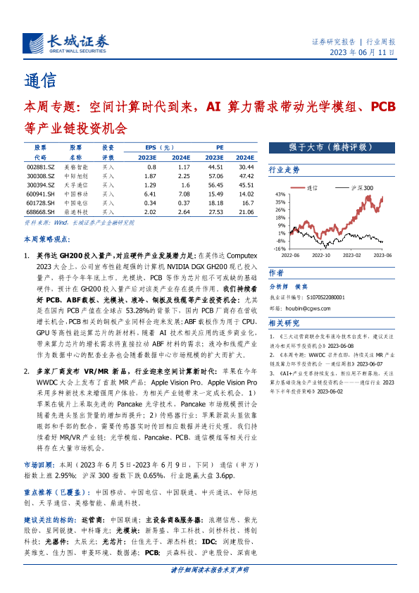 【长城证券】【20231112】2023年11月12日更新-通信-本周专题:空间计算时代到来,AI算力需求带动光学模组、PCB等产业链投资机会-18页