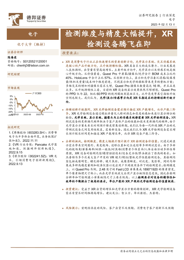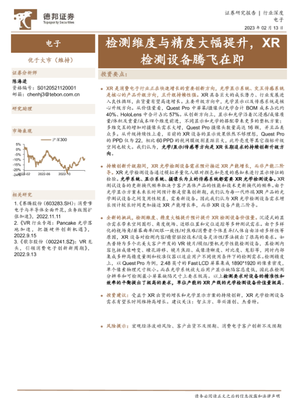 【德邦证券】【20230214】电子行业深度-检测维度与精度大幅提升-XR检测设备腾飞在即-17页