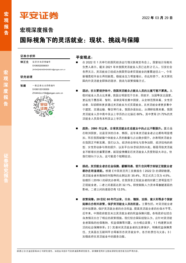 【平安证券】【20220329】宏观深度报告:国际视角下的灵活就业,现状、挑战与保障-17页