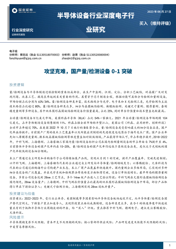 【国金证券】【20230628】2023年06月28日更新-【国金证券】半导体设备行业深度电子行业研究-攻坚克难-国产量检测设备0-1突破-28页