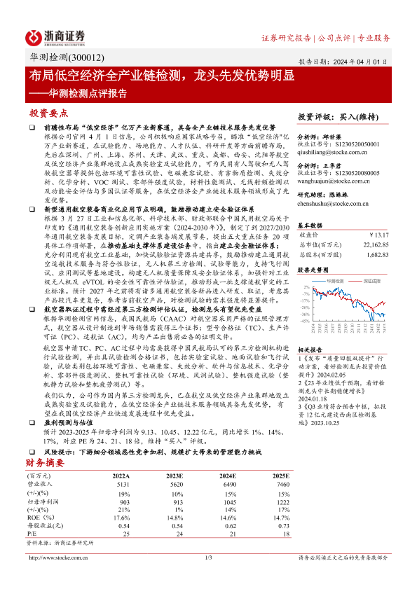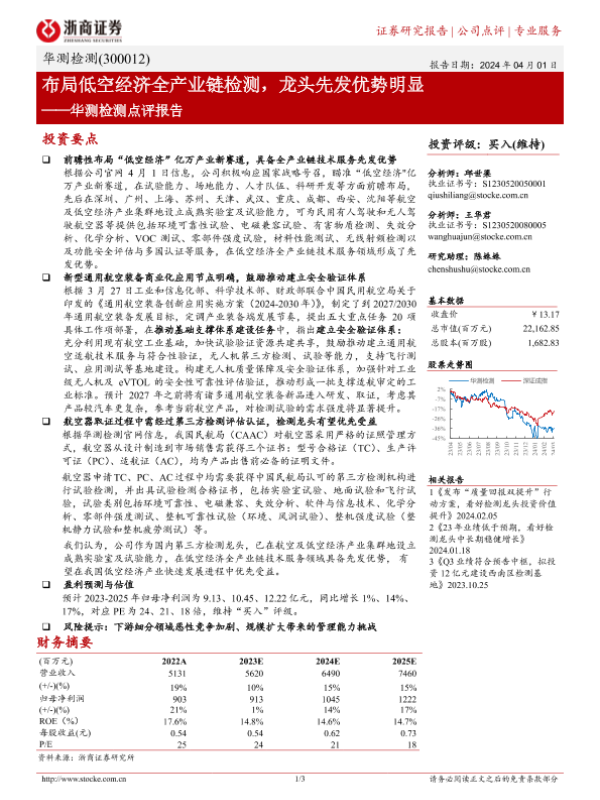 【浙商证券】【20240401】布局低空经济全产业链检测,龙头先发优势明显——华测检测点评报告-3页
