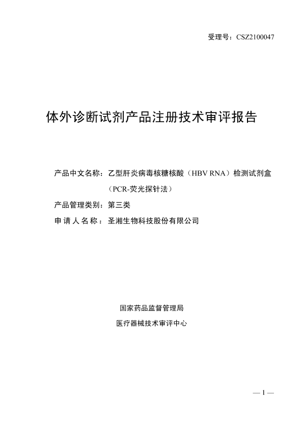 【国家药品监督管理局医疗器械技术审评中心】【20240709】乙型肝炎病毒核糖核酸(HBV RNA)检测试剂盒(PCR-荧光探针法)产品注册技术审评报告-20页
