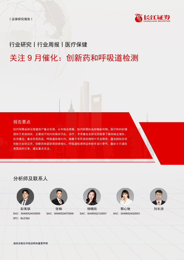 【长江证券】【20240923】医疗保健行业关注9月催化:创新药和呼吸道检测-13页